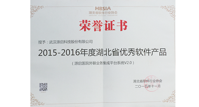 2015-2016年度湖北省優(yōu)秀軟件產(chǎn)品