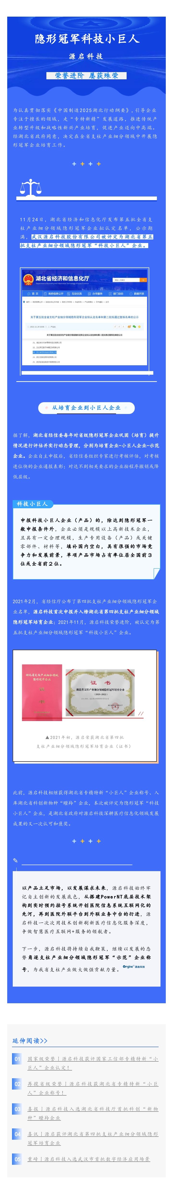 榮譽(yù)進(jìn)階丨源啟科技獲評湖北省第五批支柱產(chǎn)業(yè)細(xì)分領(lǐng)域隱形冠軍“科技小巨人”企業(yè)